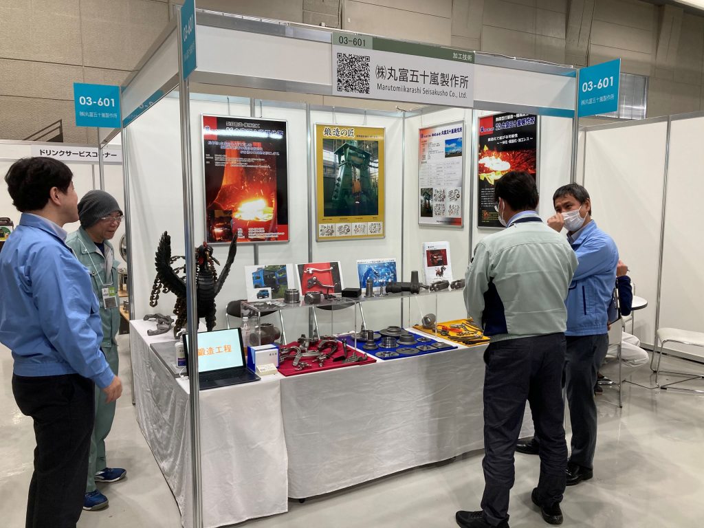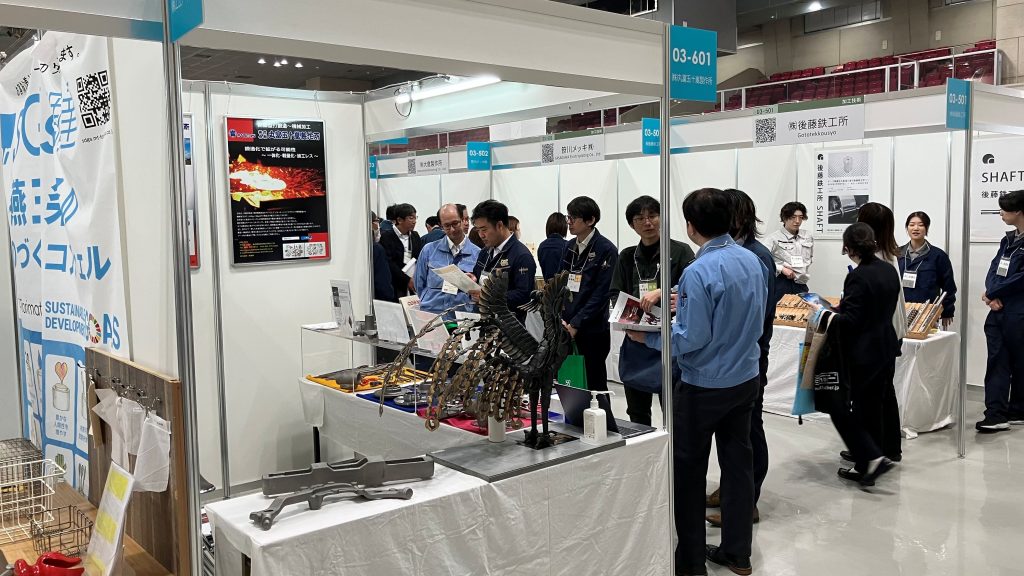 また弊社ブースの特色として、培ってきたアイデアを収束させた一点物のオリジナルオブジェを展示し、今回もご来場の皆様方からご好評のお声を頂きました。今年は古代中国の四霊獣の一つで「平和」や「繁栄」の象徴となる「鳳凰」をモチーフとしたオブジェを展示致しました。鍛造品とバリ屑(製造工程ででた廃材)を用いて製作したこのオブジェは、丸富五十嵐製作所の想像力・発想力・アイデアといった魅力を感じ取って頂けたものと思います。